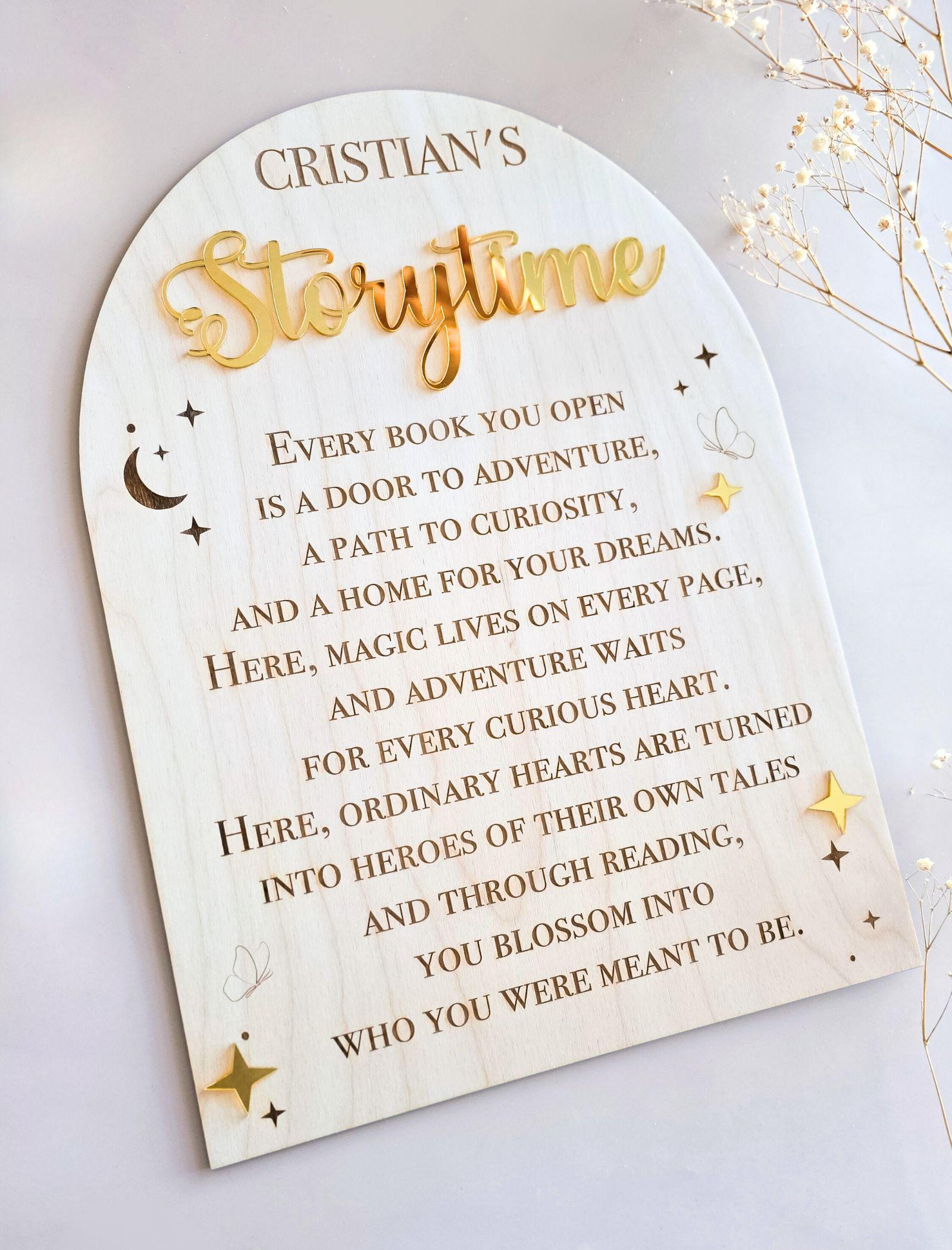 Create a magical reading corner with this personalized Storytime wooden sign — a beautiful keepsake that inspires imagination, curiosity, and adventure.