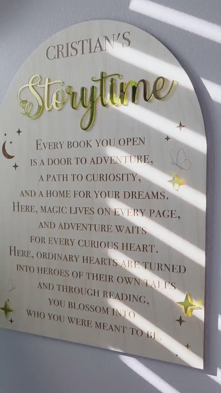 Create a magical reading corner with a personalized Storytime arch sign—laser engraved on natural maple and finished with raised 3D lettering. Choose your size and accent color, add your child’s name, and we’ll make a keepsake that grows with their love for books.
