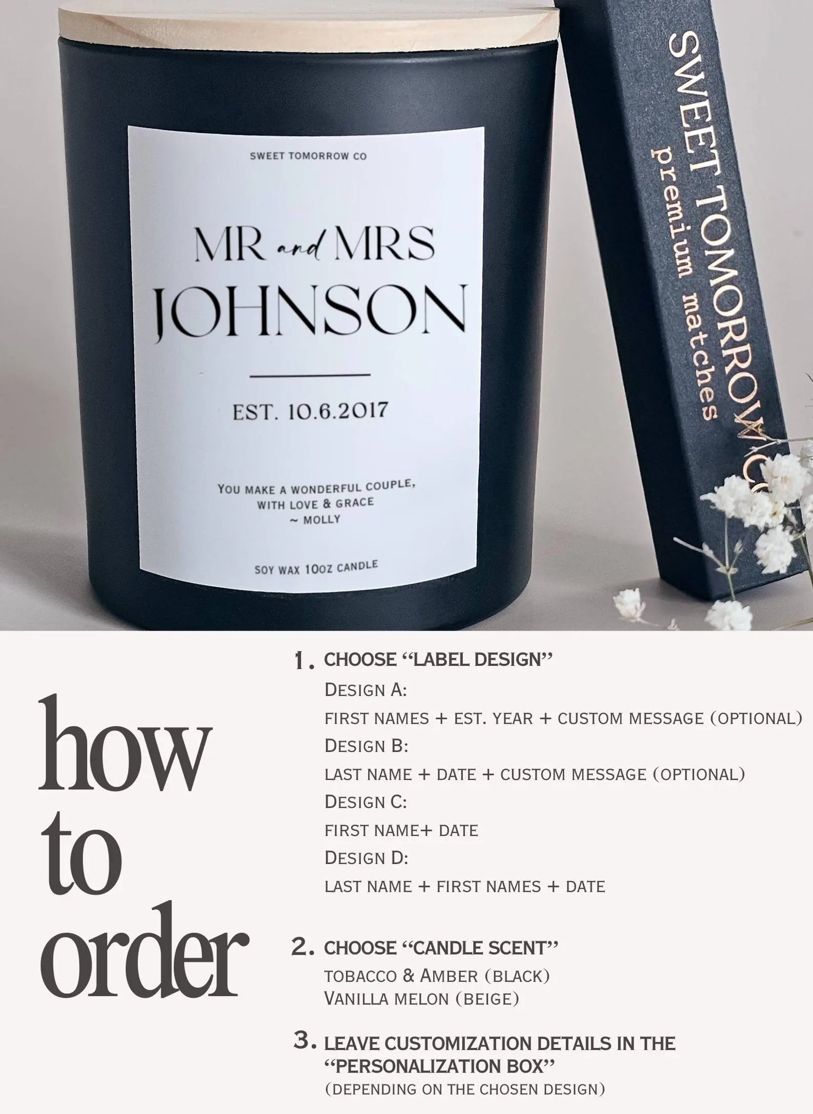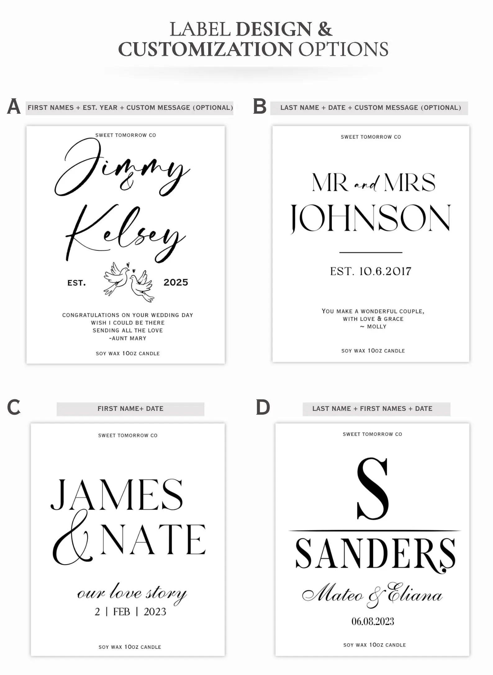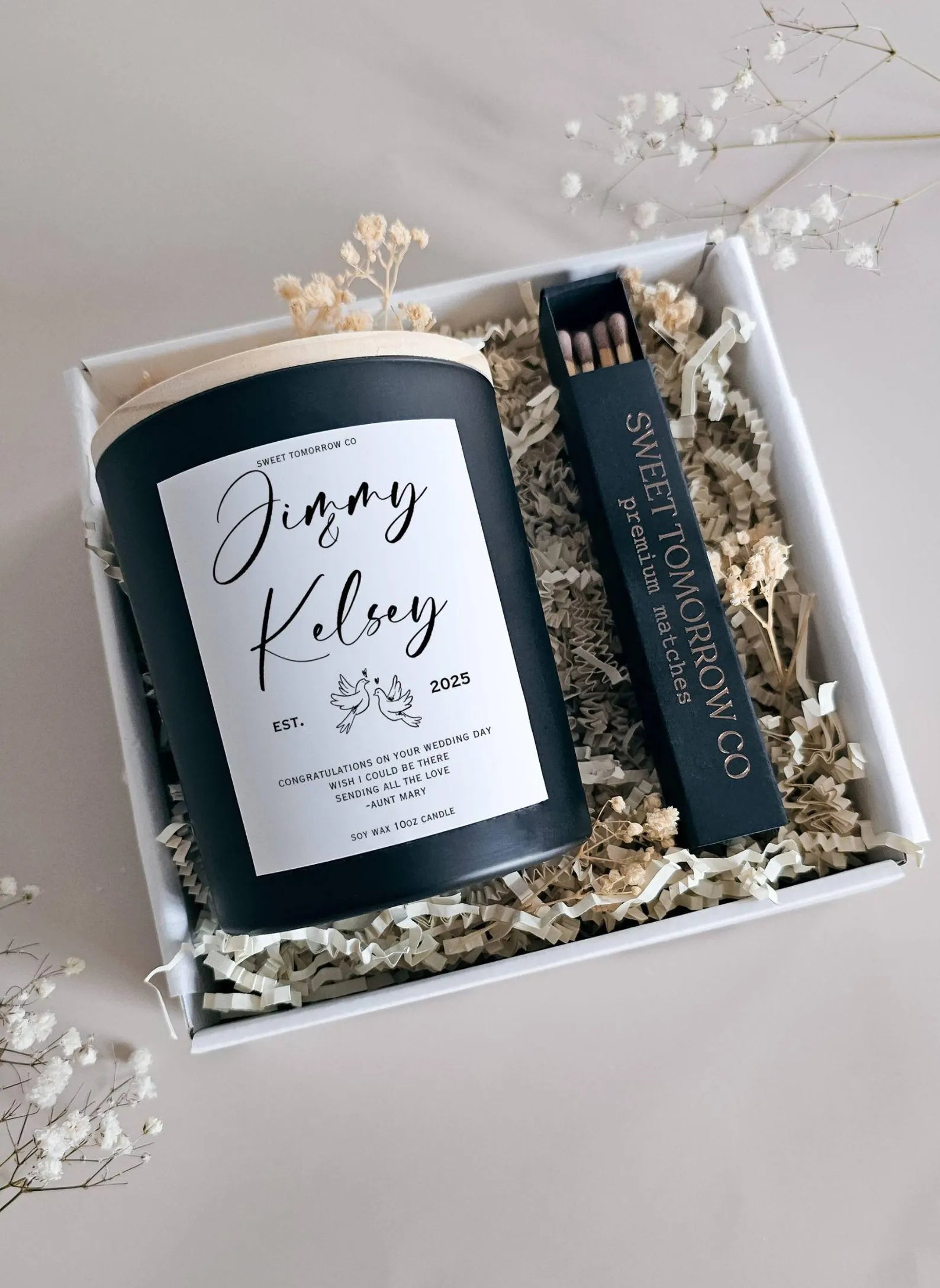Celebrate their love story with a personalized candle gift set featuring their names and special date. A heartfelt gift for newlyweds, anniversaries, engagements, or a sweet surprise for the happy couple.