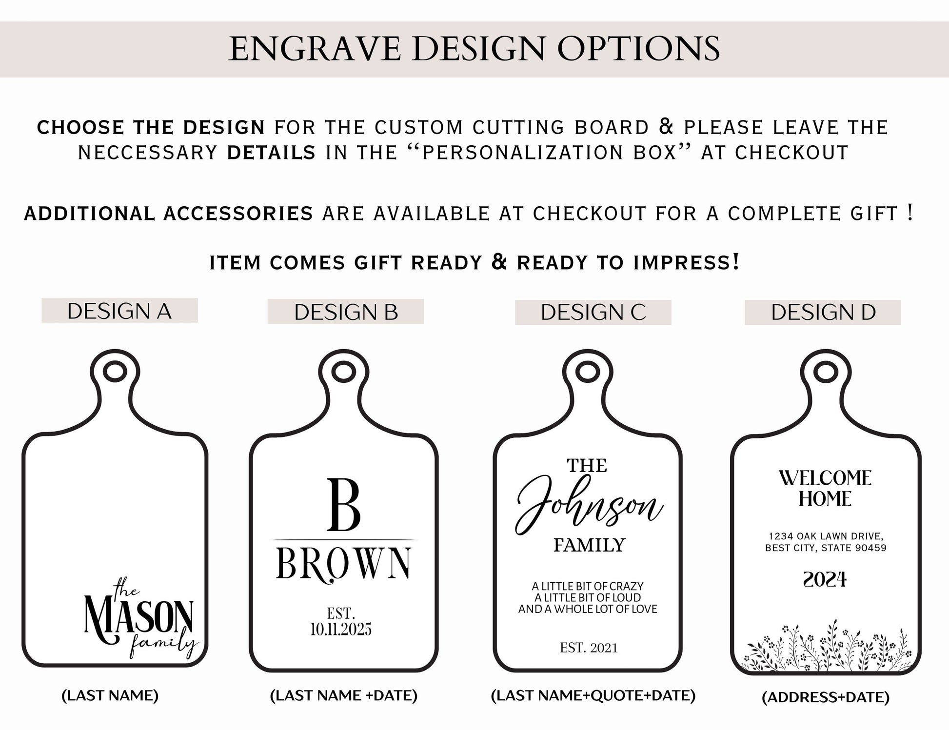Celebrate a new beginning with a personalized cutting board engraved with their family name, first home address or established year! A beautiful and practical keepsake for new homeowners — perfect for housewarmings, kitchen décor, or thoughtful realtor closing gifts.